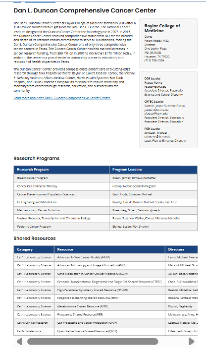- Create individual Cancer Center pages to keep the user flow on the site and consolidate relevant content in one place.