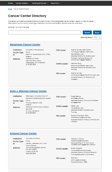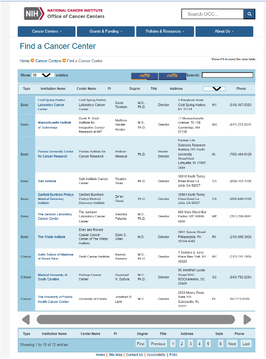 - The search functionality for Cancer Centers were confusing and difficult to navigate, in part because it spanned multiple pages.